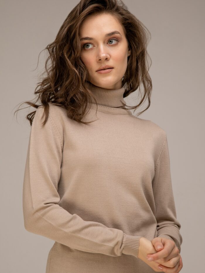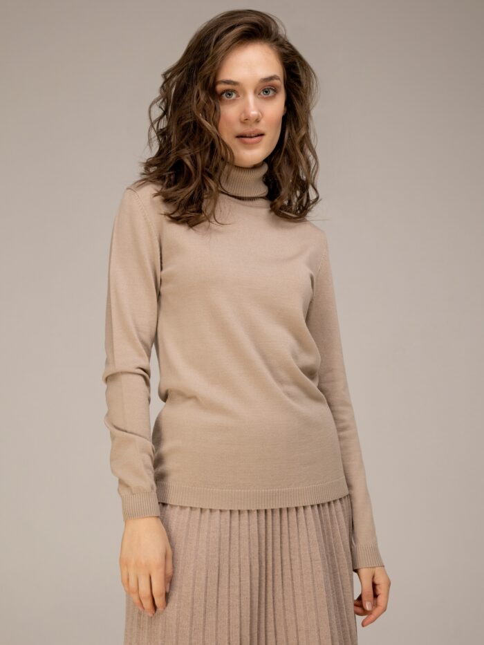 Жіночий трикотажний кремовий джемпер лонгслів з вовни мериноса 5085
