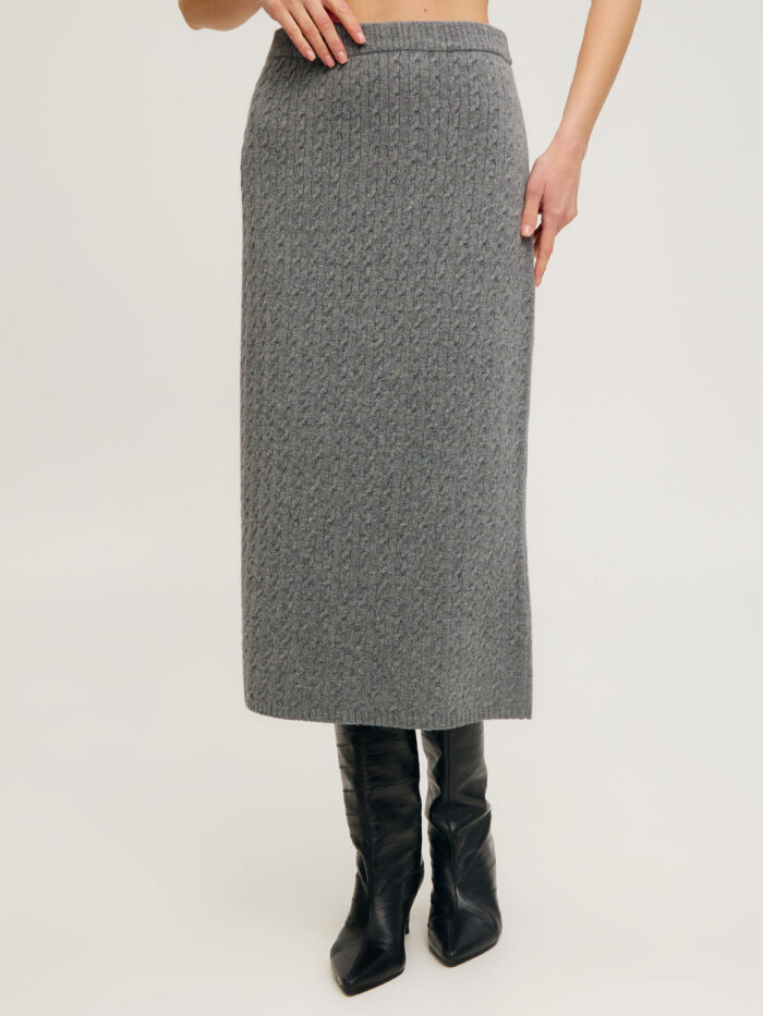 СПІДНИЦЯ ТЕМНО-СІРА міді косами з вовни 4078