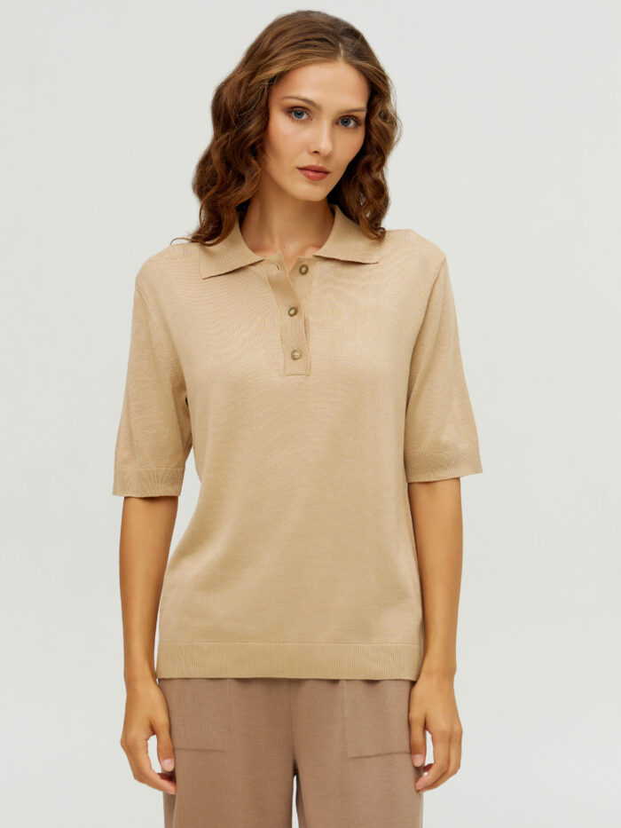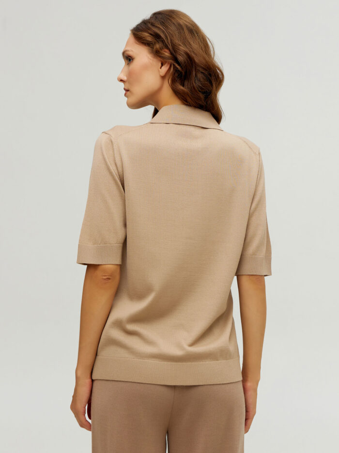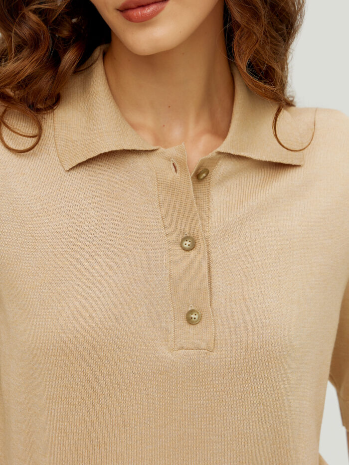 Світло-бежевий джемпер-поло з вовною мериноса 5078