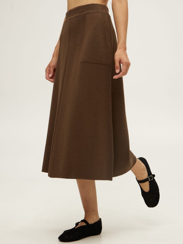 Коричнева осіння спідниця трапеція з кишенями 3064