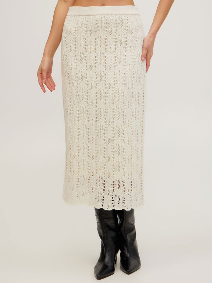 Молочна спідниця міді з ажурним візерунком 5101