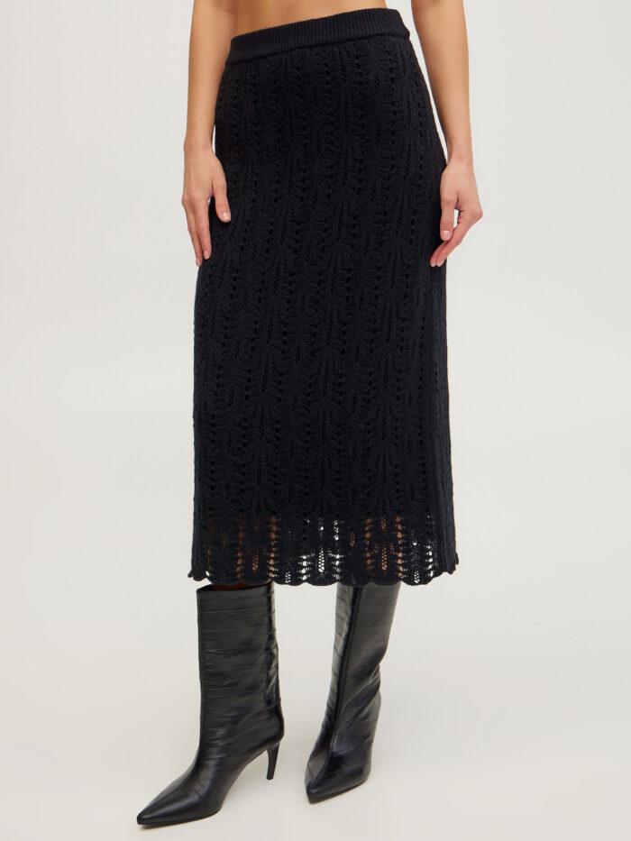 Чорна спідниця міді з ажурним візерунком 5103