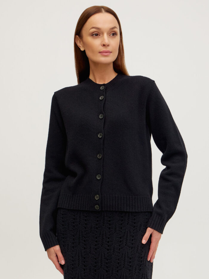 Жіночий базовий чорний в’язаний жакет кардиган на ґудзиках 5106